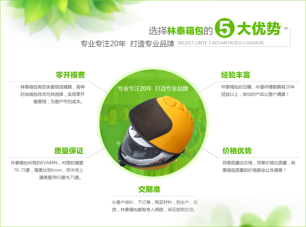 專注、專心、專業(yè),是我們一直以來秉承的發(fā)展方針,林泰箱致力于發(fā)展箱包皮具,公司主營箱包皮具,在這一行有14年的生產(chǎn)經(jīng)驗(yàn),地理位置也好,在交通發(fā)達(dá)的珠三角,公司可直接出口,有多年的外貿(mào)經(jīng)驗(yàn)。以及一批資深外貿(mào)人員。